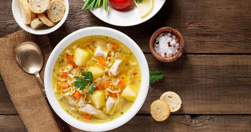 Профилактика простуды в самый разгар осени — хорошее решение, особенно если прибегать к проверенным народным методам, например, к приготовлению вкусного и полезного куриного бульона . Диетическое мясо курицы идеально впишется в дневный рацион заболевающего (или уже болеющего) простудой, а теплый бульон с добавлением овощей гарантированно поможет смягчить кашель . Поэтому если и стоит подкреплять лечение полезной едой, то только куриным бульоном.