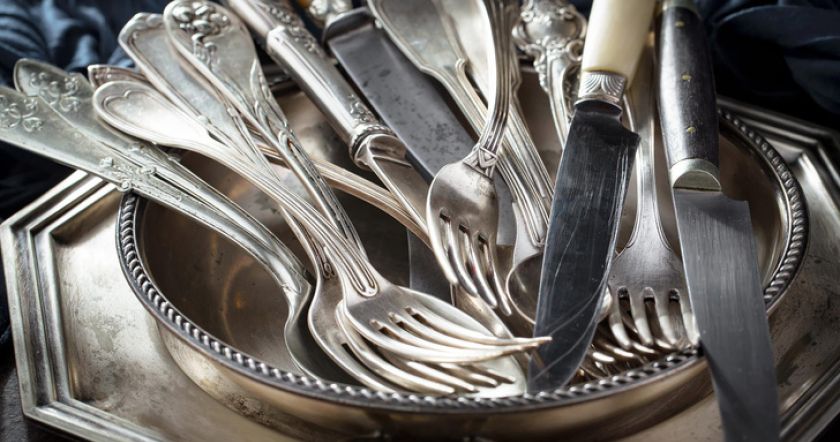 Сплав никеля и меди похож на серебро, но со временем изделия темнеют от контакта с водой и воздухом. Как отмыть эти приборы?