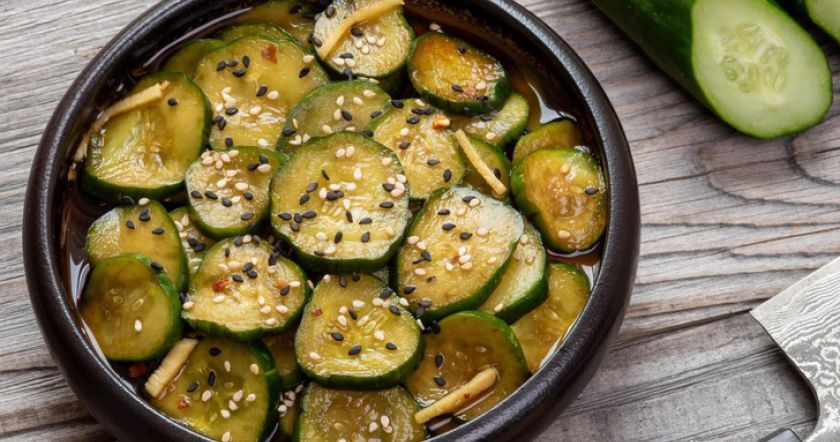 Огуречный салат с добавлением рыбного и соевого соусов под кунжутным маслом — звучит интригующе, не так ли? Такое блюдо можно спокойно приготовить на диете, не боясь высокой калорийности или возможного отекания . Наоборот, каждый ингредиент в этом салате — буквально палочка-выручалочка для худеющих