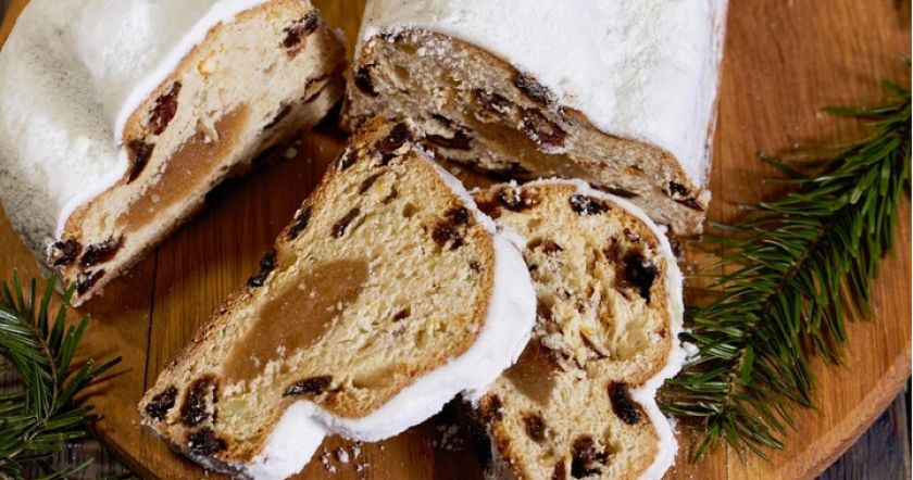 Штоллен с сухофруктами или сушеными ягодами — это традиционное рождественское блюдо. Его начали готовить в Германии, а сама форма пирога напоминает колонну (с немецкого «stulo», люди в которой восхваляли Иисуса Христа.