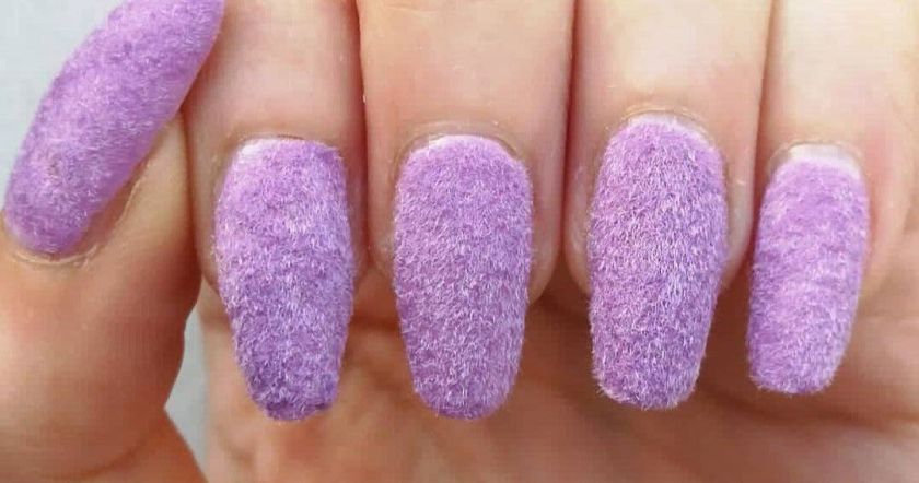 Чтобы добиться пушистого эффекта, используют специальную пудру, создающую объемное и мягкое покрытие. Но такой маникюр требует аккуратности.