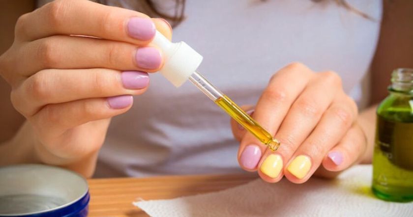 Ваша кутикула очень любит питательные масла. Можно использовать готовые средства, а можно и поиграть в ведьму — смешать «зелье красоты» самостоятельно. Для этого вам потребуются абрикосовое масло, масло чайного дерева и масло лаванды. Все они есть в аптеках или на маркетплейсах.