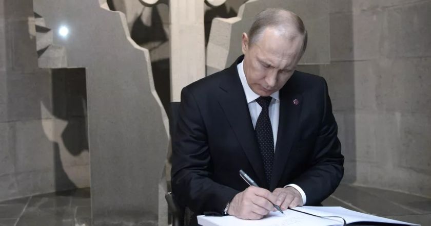Запись президента России Владимира Путина в Книге почетных гостей музея-института Геноцида армян (24 апреля 2015). Еревaн