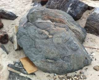 Сами камни, хотя и находятся в полосе прибоя - выдерживают воздействие волн без особого труда, письмена и рисунки волнами не уничтожены, хотя пролежали эти камни здесь очень долго. Камни практически не покрыты отложениями и мхом, а так же блестят на солнце. Извилистая текстура камня говорит о том, что он подвергся воздействию высоких температур, которые привели его в состояние вязкой текучести, как бывает при извержении вулкана. Красный цвет многих камней говорит о высоком содержании в них железа, и очень велика вероятность того, что железо это не «растворено» в породе, а произошло смешение расплава стальных конструкций с расплавленной базальтовой лавой.