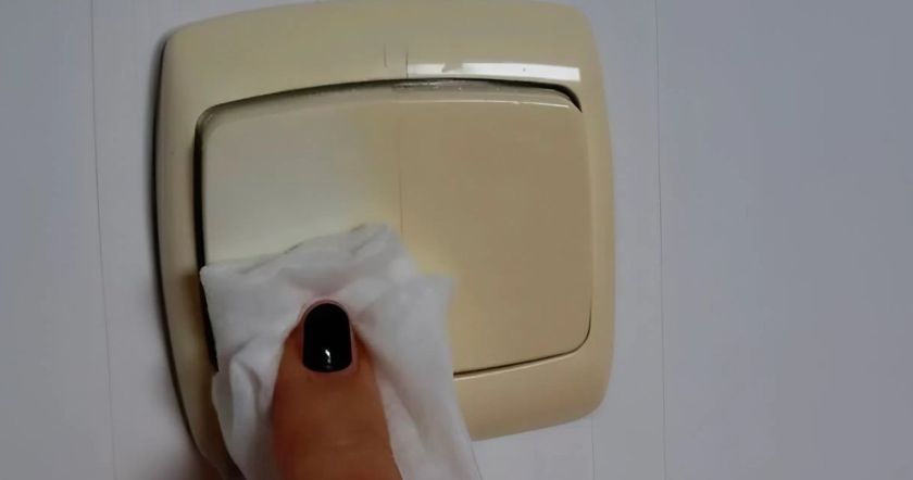 Смочите чистую хлопковую салфетку в подготовленном растворе димексида. Аккуратно протрите поверхность розеток и выключателей, уделяя особое внимание наиболее пожелтевшим участкам.