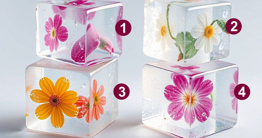 Посмотрите на картинку. Перед вами четыре кубика льда, внутри которых замерзли цветы. Выберите тот, что вам нравится больше всего, и узнайте, насколько легко вы отпускаете прошлое и обиды.
