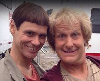 Джим Керри и Джефф Дэниэлс на съемочной площадке сиквела комедии "Тупой и еще тупее"
