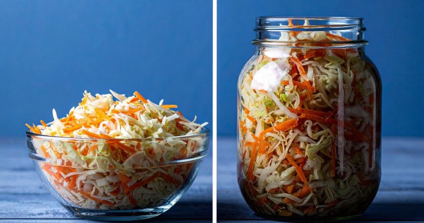 Понадобится килограмм капусты, одна морковь, один сладкий перец, пол-литра воды, пять столовых ложек уксуса, три ложки подсолнечного масла, шесть ложек сахара и одна ложка соли. Этого количества хватит на две банки объемом 0,5 литра.