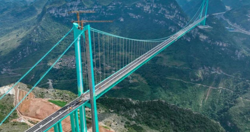 Мост длиной 2890 метров соединяет районы Лючжи и Аньлун в провинции Гуйчжоу. Если раньше путь занимал около 2 часов, теперь поездка через каньон займёт всего 2 минуты.