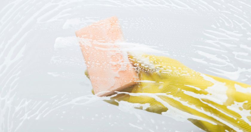 Ежедневно на шероховатой поверхности матовых стекол скапливаются частички пыли, а затем придавливаются нашими же руками. Поэтому чистить их следует не реже одного раза в месяц. Для обычной регулярной уборки стоит подготовить мягкую ткань из микрофибры или губку (только не используйте жесткую сторону), развести в теплой воде несколько капель жидкого мыла или средства для мытья посуды, а затем этим раствором протереть стекло с двух сторон. Начинайте всегда сверху и выполняйте круговые движения, чтобы избежать появления разводов.
