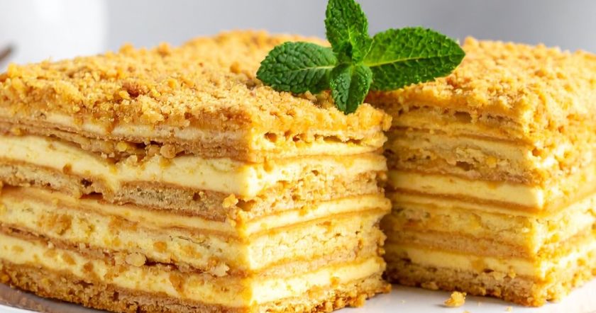 Основа десерта – бисквитный корж на кефире, который выпекается всего 15 минут. Сметанный крем с вареной сгущенкой делает торт невероятно нежным и пропитанным. Добавление орехов придает текстуре приятную хрустящую нотку. Такой десерт станет отличным решением для семейного чаепития или неожиданного визита гостей.
