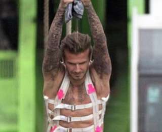 Татуированный Дэвид Бекхэм в трусах забрался на крышу Восточного Лондона. Ради чего и ради кого я пока не выяснила. Возможно это реклама труселей, его собственного производства, все может быть. Но выглядит Дэвид вовсе не как Тарзан круто. Увы и ах, скорее как Карлсон, который живет на крыше:)