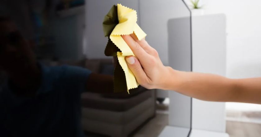 Есть и второй риск: микроцарапины. Бумажные полотенца и сухие салфетки, которыми часто пользуются «для быстроты», сделаны из грубых волокон. На стекле старых телевизоров это не было проблемой, а вот на мягком защитном слое современных панелей такие материалы оставляют следы уже после пары протираний.