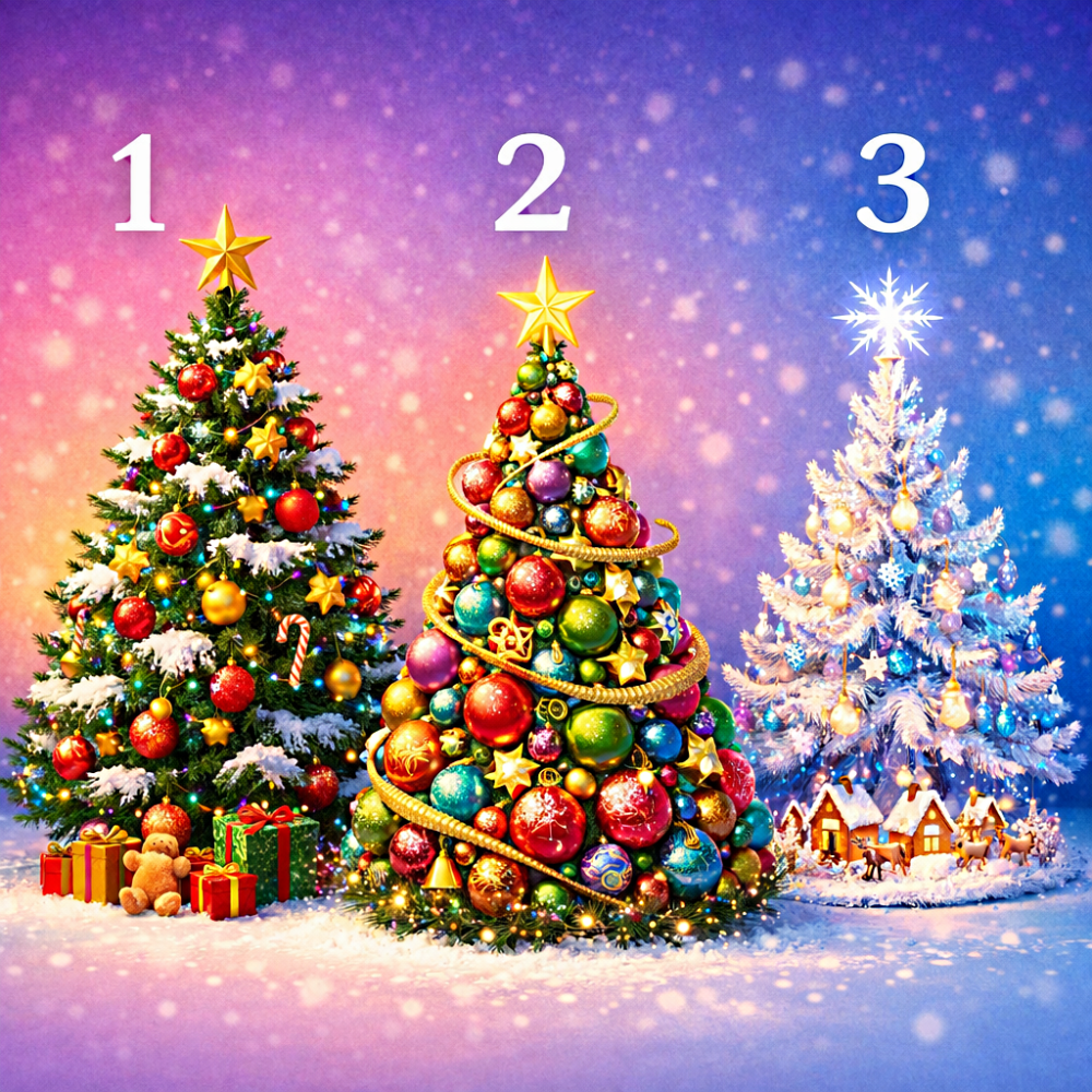 Перед вами три совершенно разные рождественские ёлочки. Каждая из них несёт своё значение и указывает на определённый ход событий в новом году. Выберите ту ёлочку, которая первой привлекла ваше внимание, и прочитайте предсказание.
