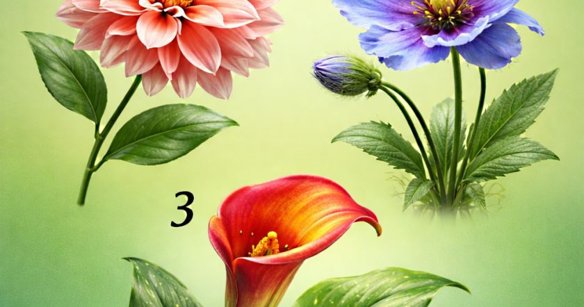 Перед вами три разных цветка. Каждый из них несёт своё предсказание. Посмотрите на картинку и выберите тот, который первым привлёк ваше внимание. Не анализируйте — первый выбор самый верный.