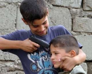 Часто дети, растущие в неблагополучных местах, не видят ничего, кроме войны, и не знают другого досуга, кроме игр с оружием...