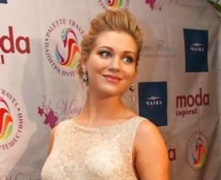Будущая мама Кристина Асмус пока примеряет новые образы: на церемонии Прорыв Года-2013 актриса появилась в платье в пол, украшенном перьями, которое мягко подчеркивало округлившиеся формы.