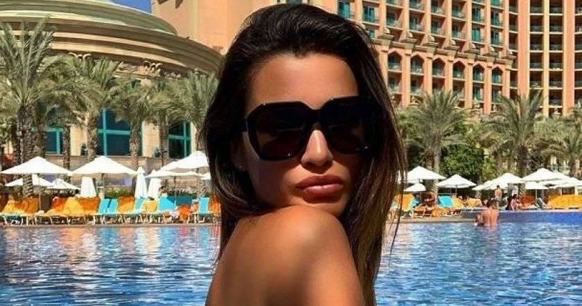 На днях Ксюша выложили снимок, сделанный во время отдыха в бассейне. На Ксении белый топ и коричневые трусики с завышенной талией.