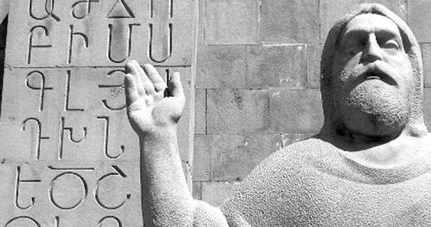 Этот алфавит был создан гениальным человеком с поразительным чувством родины—был создан однажды и навсегда,— он совершенен. Тот человек был подобен богу в дни творения … Он такой же факт, как этот алфавит. Имя его Месроп Маштоц.
