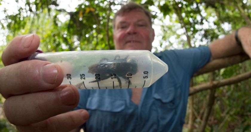 Группа североамериканских и австралийских биологов нашла гигантскую самку пчелы Уоллеса, живущую в термитнике на дереве, более чем в 2 метрах от земли.