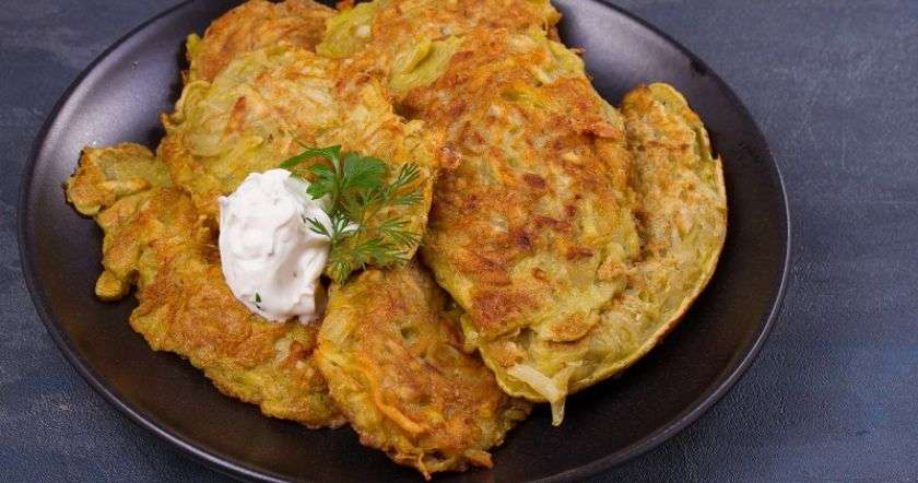 14:10 , 12 апреля, 2019Еврейские латкес обязательно должны быть румяными и зажаристыми, с тонкими ажурными краями. Для того, чтобы они получились именно такими, картофель натирают на самой крупной терке, а затем тщательно отжимают, чтобы избавиться от лишней влаги.