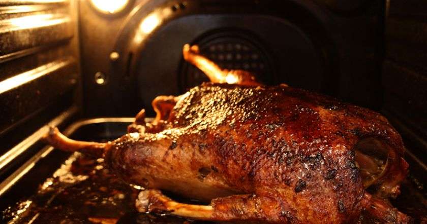 - Запекай гуся 15 минут при температуре 200 градусов, затем еще 10 минут при температуре 180 градусов. Больше не нужно, смотри, чтоб не передержать! Как только появится золотистая корочка, сразу вынимай из духовки.
